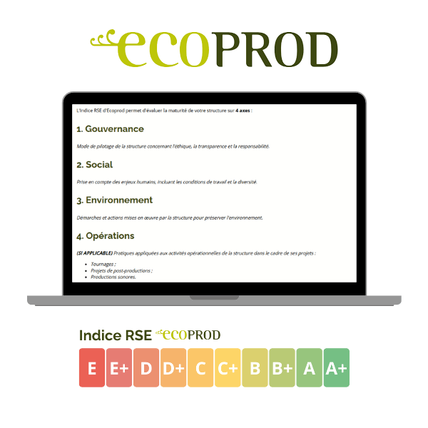 2024-25 – collaboration avec l’organisme Ecoprod dans la conception de l’ Indice RSE, un outil d’auto-diagnostic destiné aux TPE et PME du secteur audiovisuel. Cet outil aide à structurer et valoriser une démarche RSE en proposant un cadre d’évaluation clair et adapté aux spécificités métiers de la filière.